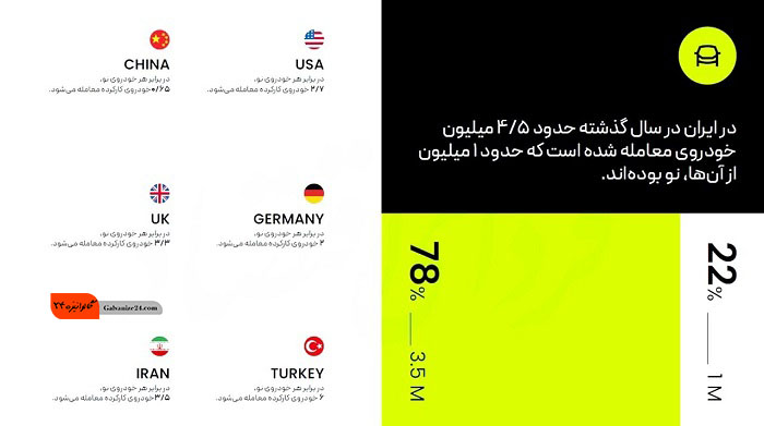 نکته جالب اما بیشتر بودن نسبت تعداد معاملات خودروهای کارکرده به نو در ترکیه از ایران طی سال گذشته است.